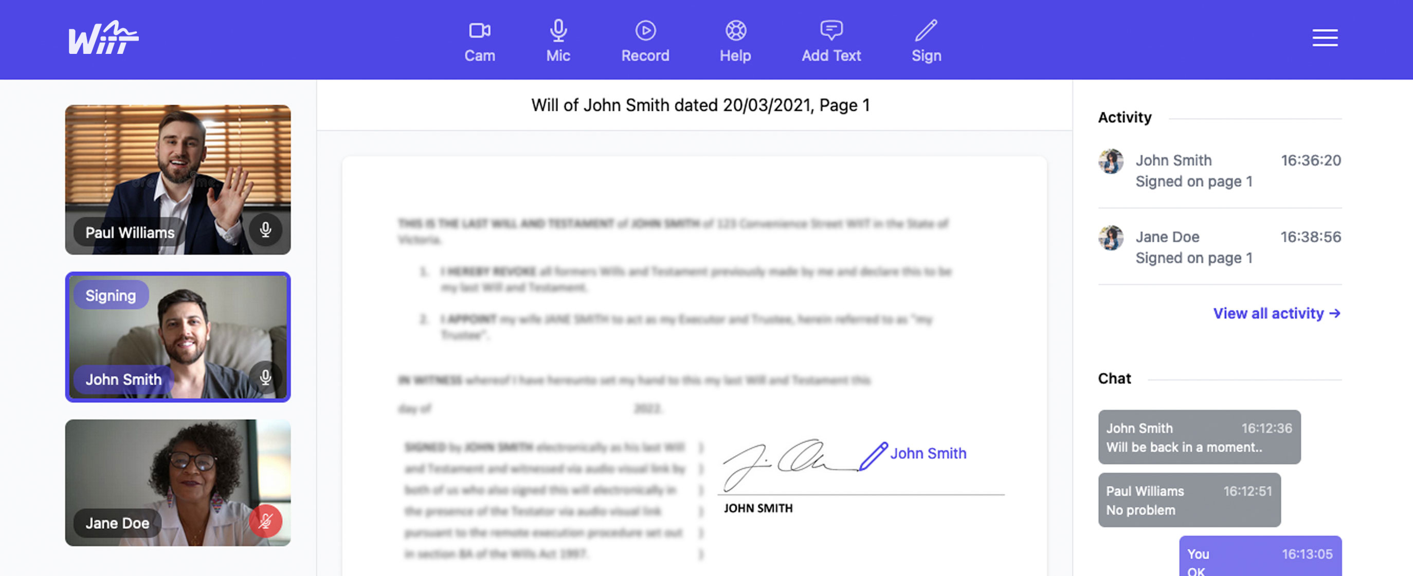 Witness online document signing sessions that meet legal compliance, eliminate delays & reduce costs.